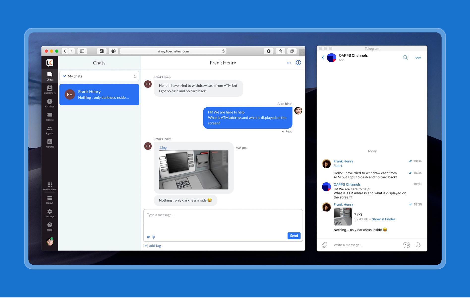 Set up a Telegram bot and connect it to LiveChat in under five minutes. Customers chat via Telegram; agents respond in LiveChat — full media support, complete history, zero context loss across channels.