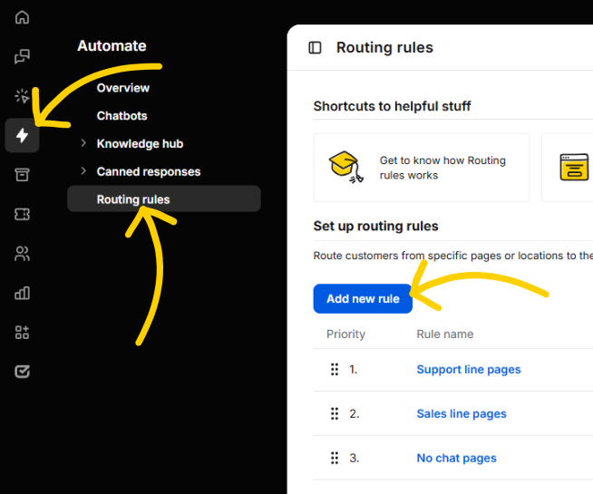 Go to Automate>Routing rules and click on Add new rule.