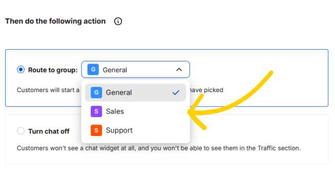 From the drop-down menu, pick the groups which should catch these chats.