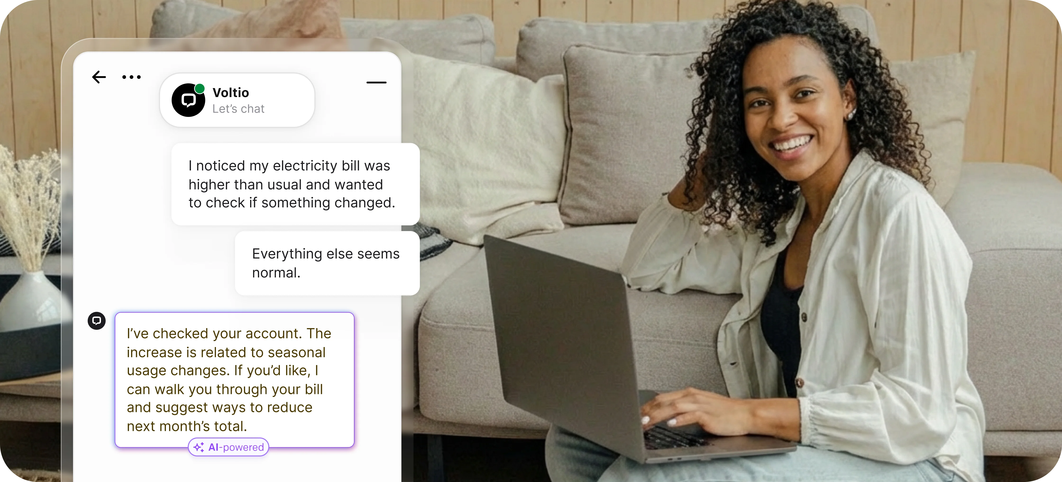 LiveChat combines chat with AI to help your team answer energy customers faster. Whether they need to check their bill, confirm payment details, or report an outage - your agents deliver accurate information while AI handles routine questions 24/7.